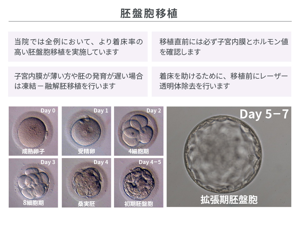 胚移植とは、体外で受精・培養して育てた胚を子宮内に戻す処置のことです。