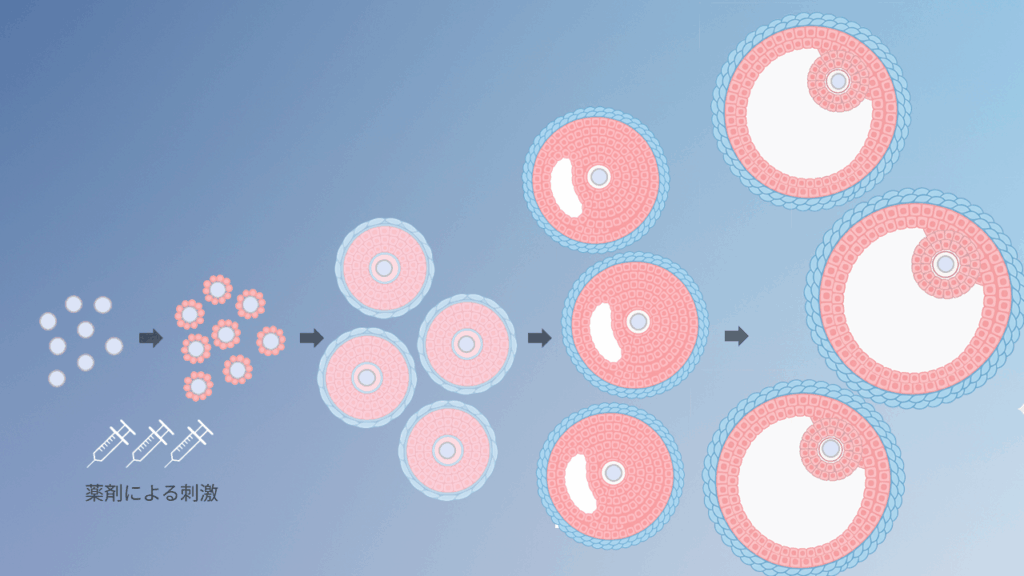 刺激周期では、薬や注射で卵巣を刺激し、複数の卵胞を同時に育てます。